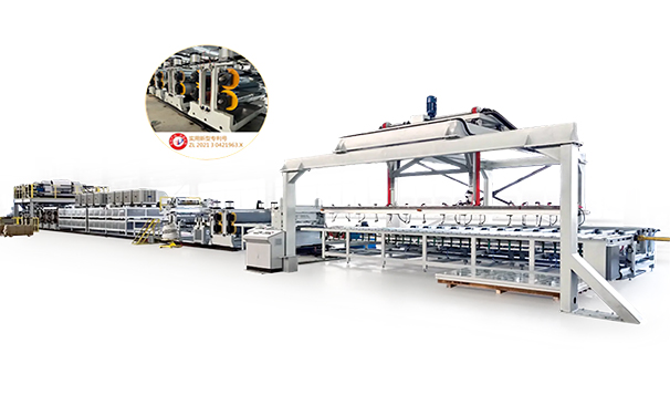 產品用途及特點:該生產線是將無機粉料通過混合、攪拌、擠出后成軟性板狀芯材,經討柔性支撐傳輸系統通過不同的加溫、擠壓、冷卻...